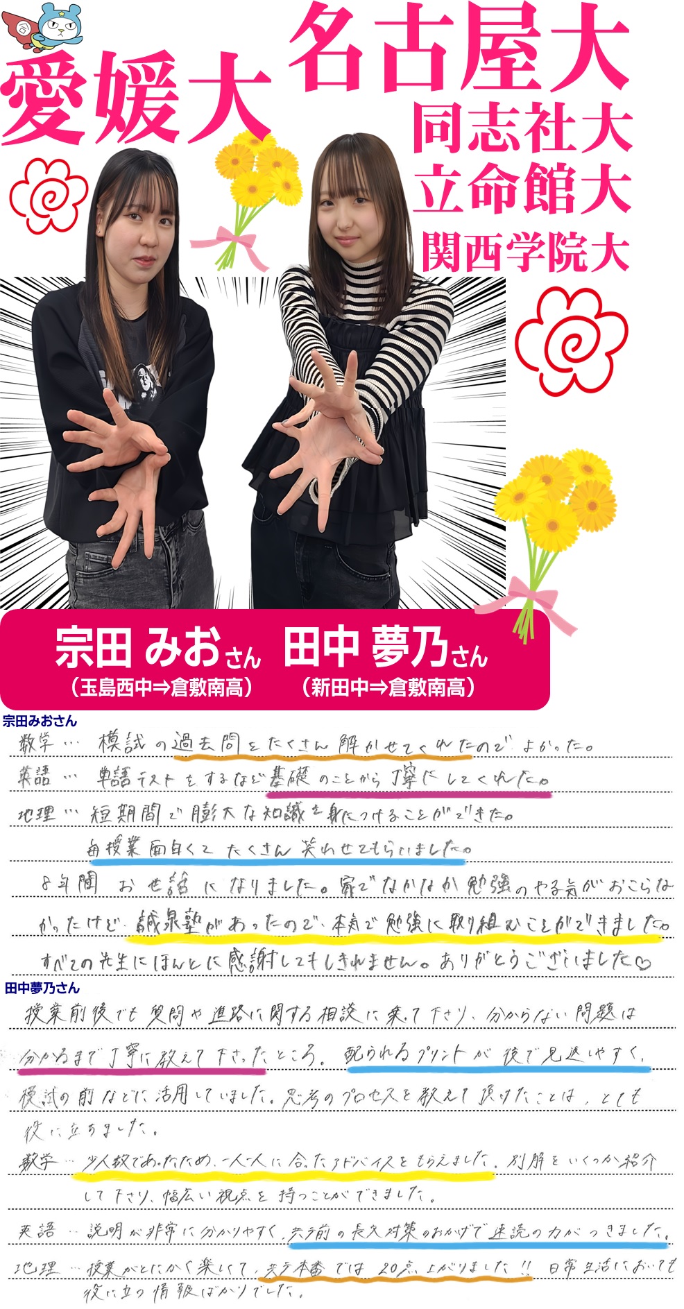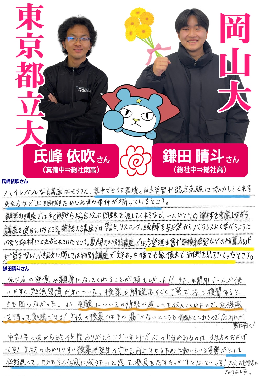25年春に大学入試を終えた塾生たちの声です!