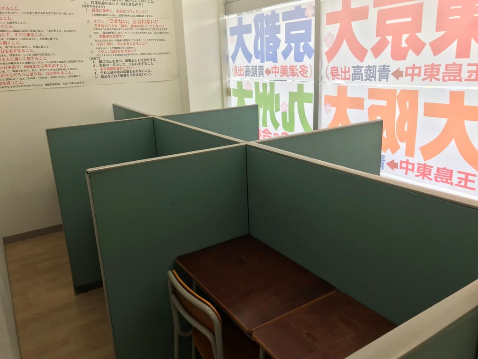 大教室に最新のプロジェクター完備・自習室有・個別指導専用教室有・男女別トイレ